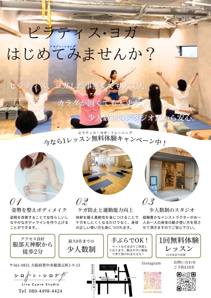 ヨガ・ピラティス秋のキャンペーン♪ 2025.10.21 こんにちは! スポーツの秋にヨガ・ピラティス・バレトンを初めてみませんか? シロヨガの秋のキャンペーンのお知らせです 肩こり解消プログラム新設のお知らせ 前の記事